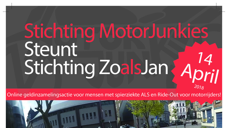 De door Stichting MotorJunkies geplande Ride4ALS krijgt inmiddels de nodige aandacht via verschillende media items. Niet alleen het persbericht in de 'Soester Courant' en de verspreiding van het Ride4ALS evenement op facebook zorgen voor aandacht, ook het aanplakken van een A4-poster bij diverse lokale winkeliers brengen de boodschap naar buiten. Elke vorm van publiciteit draagt bij aan het behalen van ons doel: een sponsorbedrag van minimaal 2500 euro.