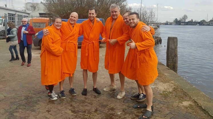 Onze toppers zijn de koude Vecht ingesprongen! Harry en Maarten voor de vijfde keer deze week en ze werden vandaag dankzij jullie donaties bijgestaan door Femke, Wim, Paul en Michiel!